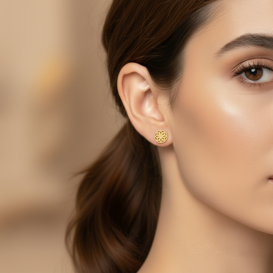 Gold Stud Earrings with Round Filigree