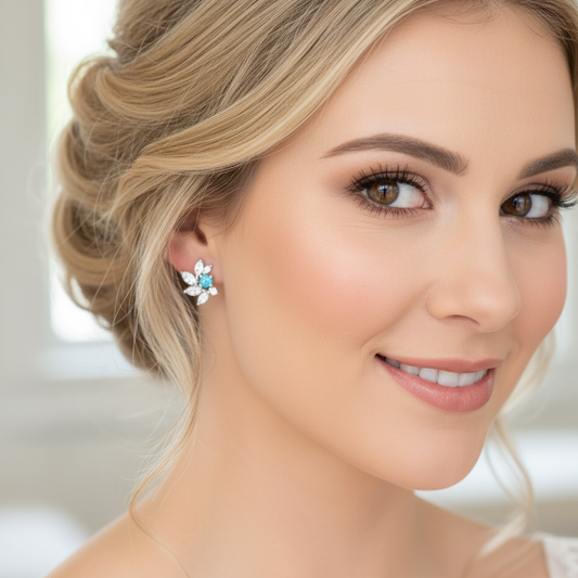 Aquamarine CZ Bridal Earrings in Sterling Silver