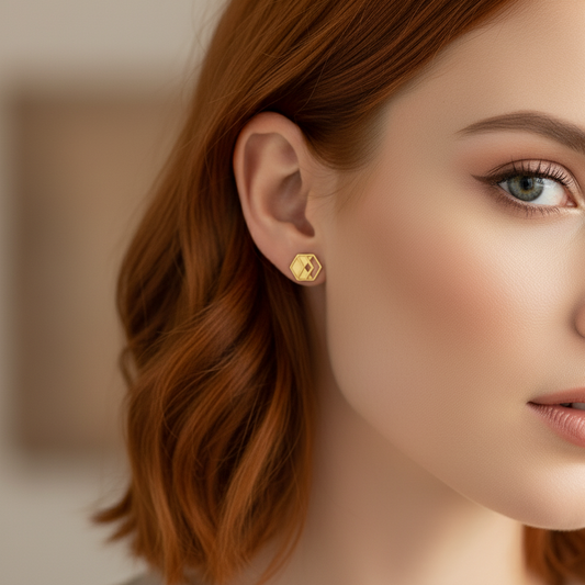 Gold Hexagon Cutout Stud Earrings