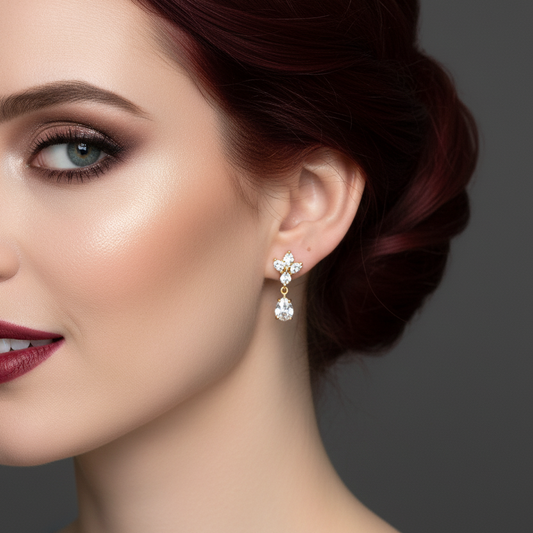 Gold Antique Chandelier CZ Teardrop Earrings