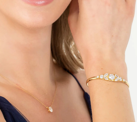 Gold Cuff Cubic Zirconia Marquise Bracelet