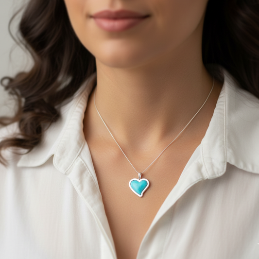 Sterling Silver Turquoise Heart Pendant & Earrings Jewelry Set