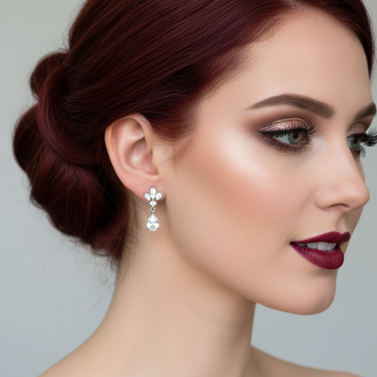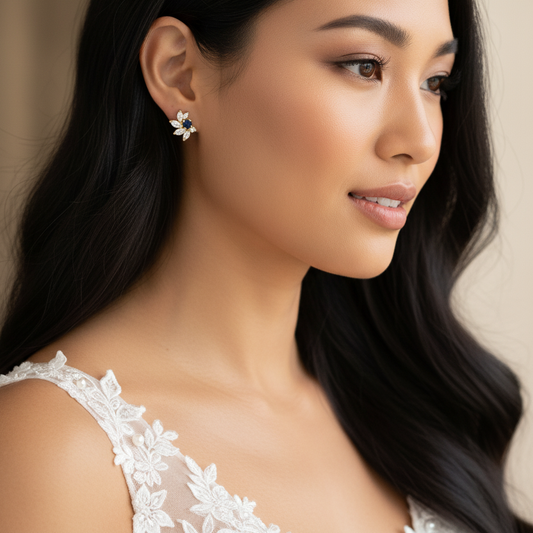 Deep Aquamarine CZ Bridal Earrings in Silver