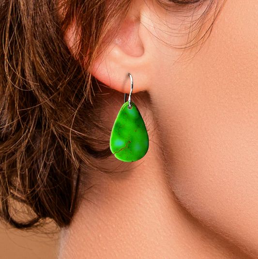 Green Turquoise Gibbsite Tear Drop Earrings Large