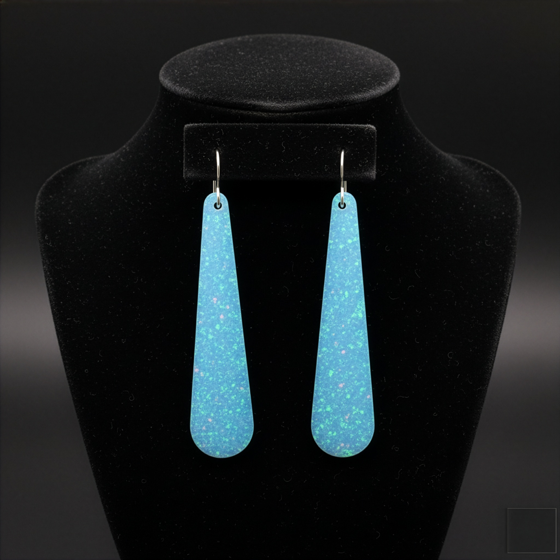 These stunning large teardrop earrings feature a captivating sky blue opal in a sleek, tapered silhouette. Crafted by Native American artisans, each piece glows with iridescent flecks that reflect shades of green and aqua for a dreamy, ocean-inspired aesthetic. The lightweight design ensures all-day comfort while adding a luminous statement to any jewelry collection.