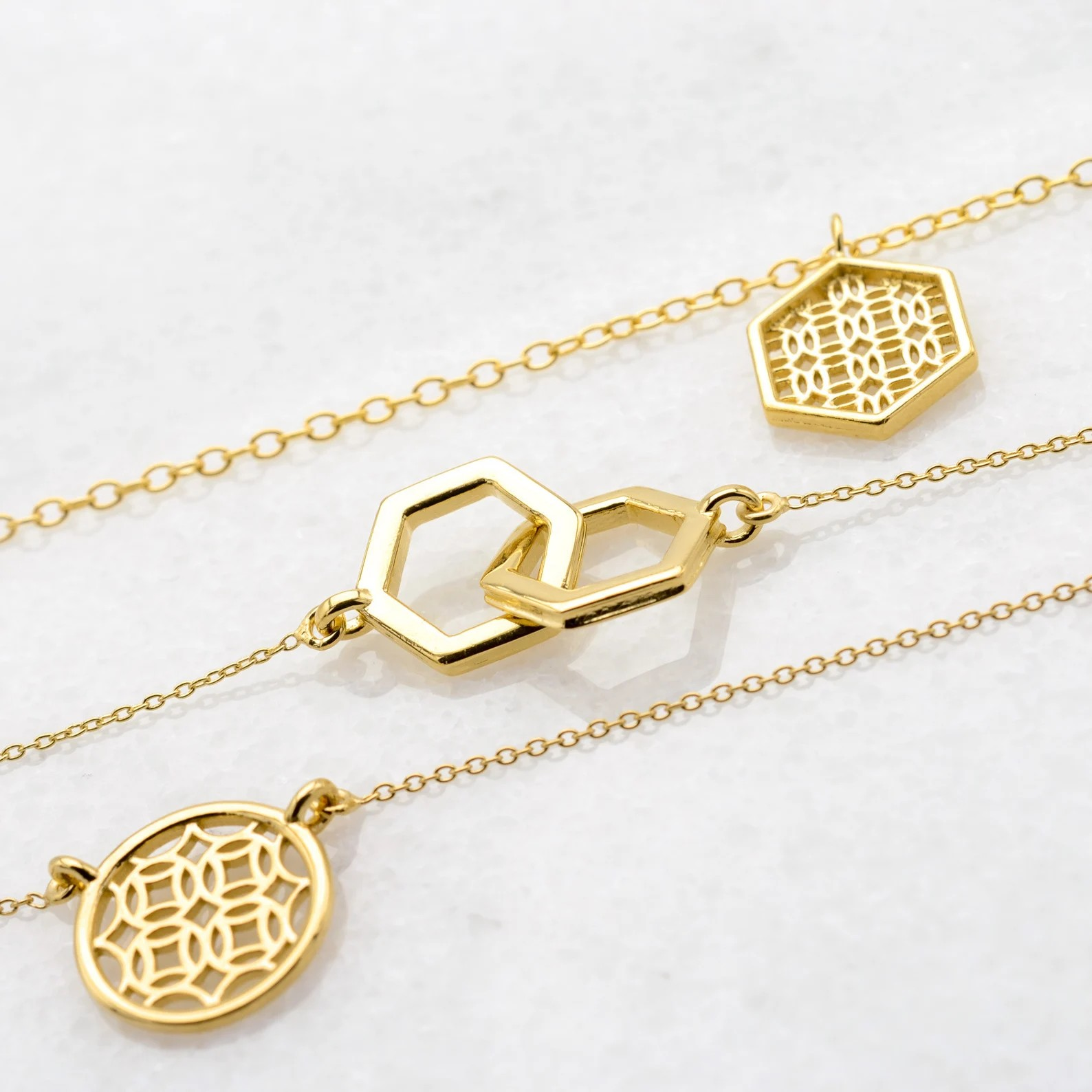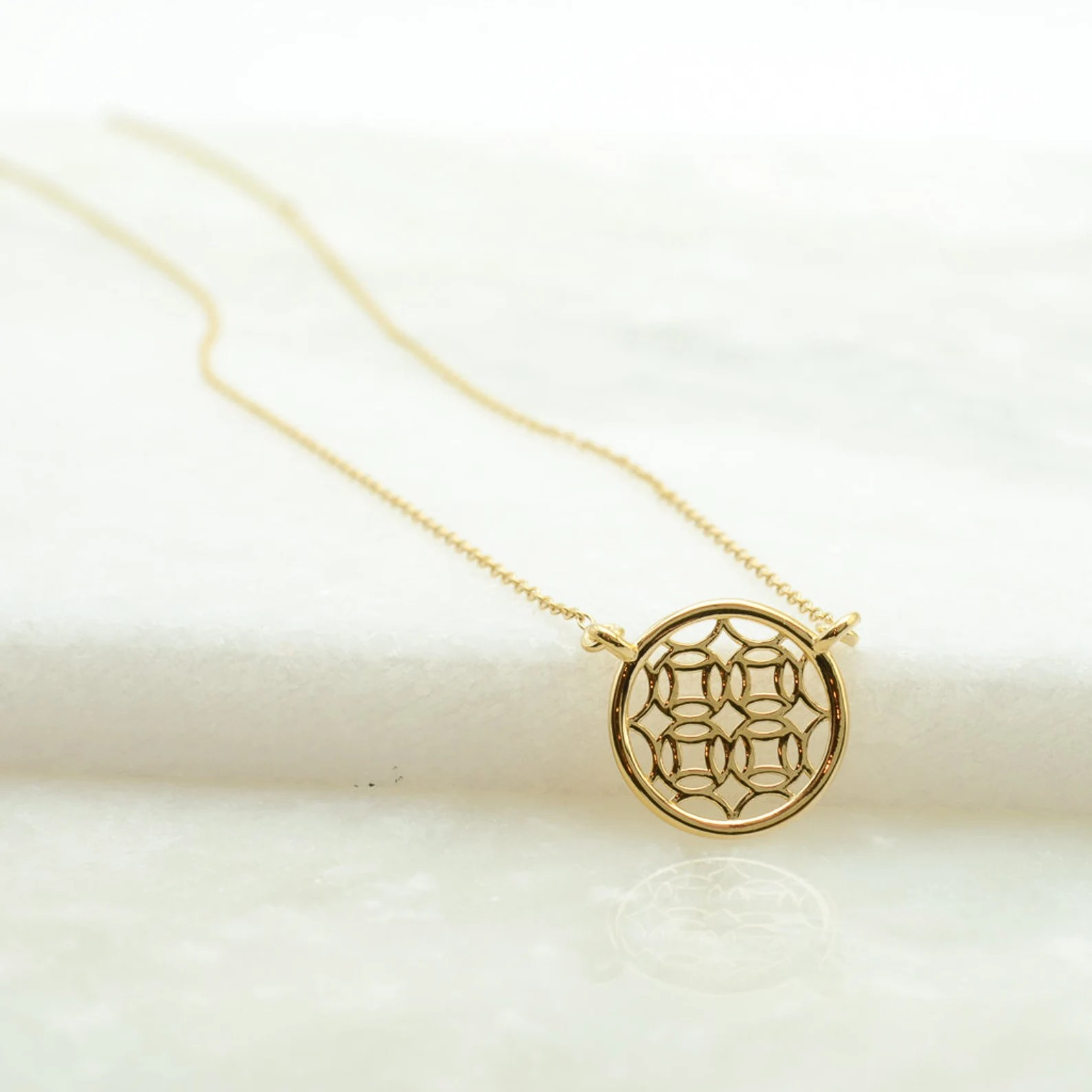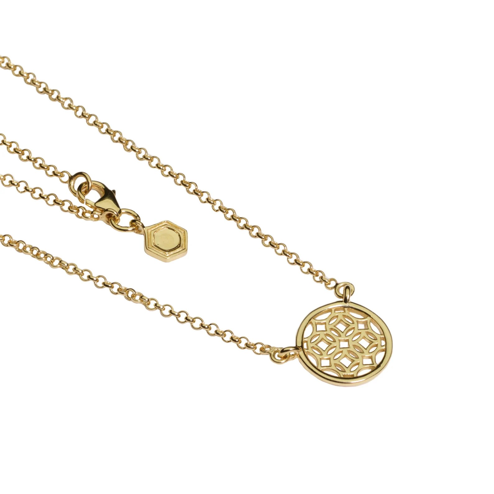 Take your look from plain to polished every day. Inspired by femininity, this necklace has a fine lace interior and a bold outer edge, making it both delicate and strong. The eye-catching geometric filigree pendant is designed to sit at the perfect length for daily wear.