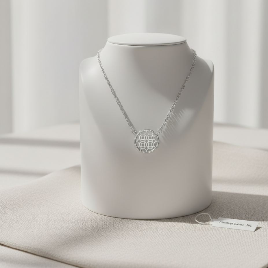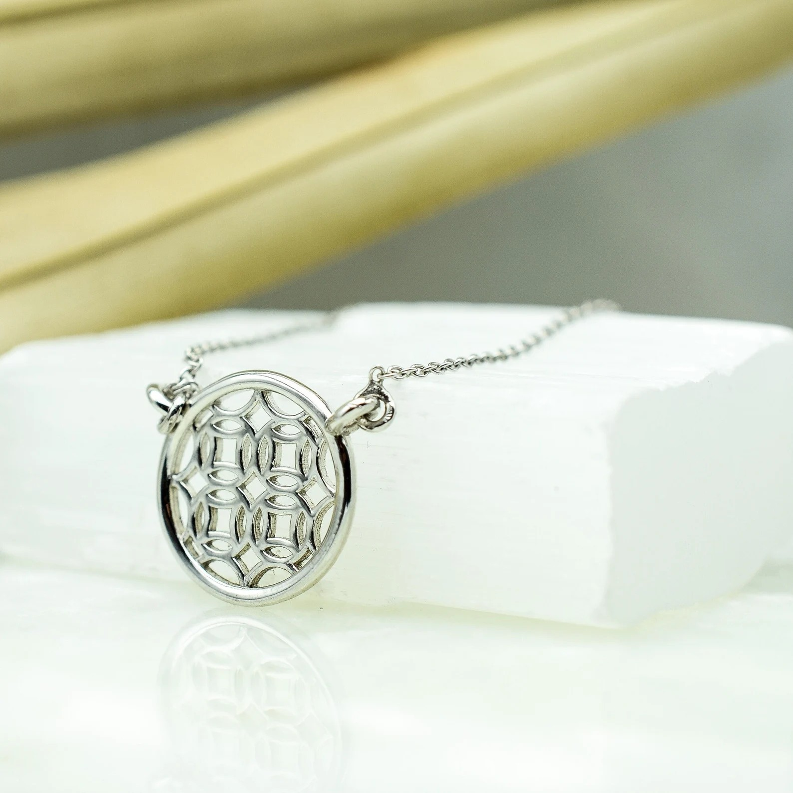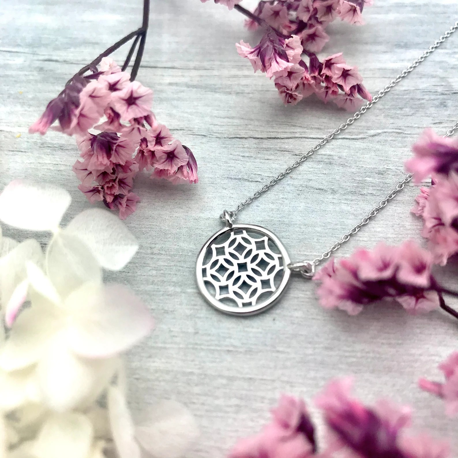 Take your look from plain to polished every day. Inspired by femininity, this necklace has a fine lace interior and a bold outer edge, making it both delicate and strong. The eye-catching geometric filigree pendant is designed to sit at the perfect length for daily wear.