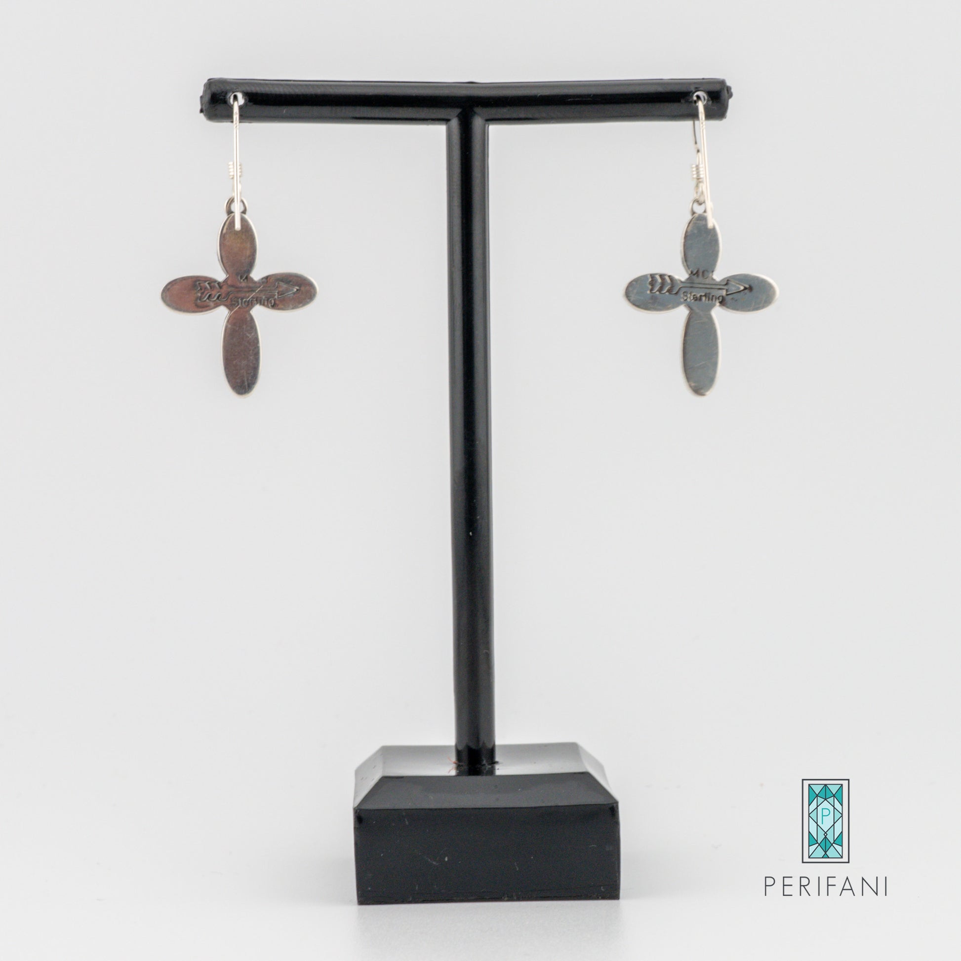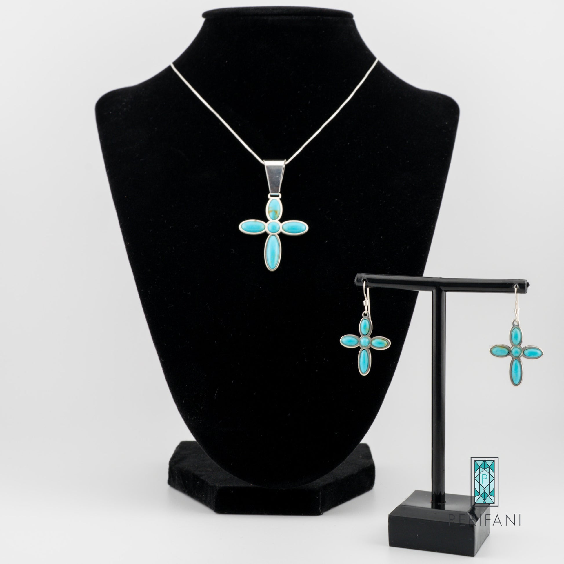 Sterling Silver Turquoise Cross Necklace and Earring Set