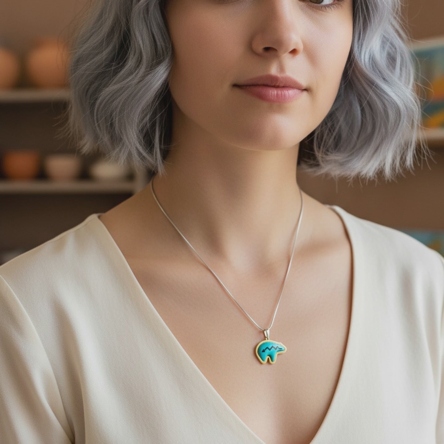 Turquoise Jewelry Bear Necklace: Sterling Silver Jewelry - Native American Jewelry Gifts