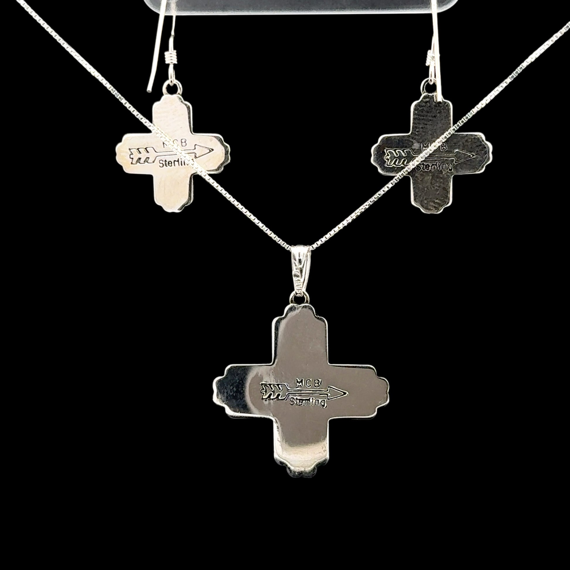 Sterling Silver Turquoise Zia Sun Pendant & Earrings Jewelry Set